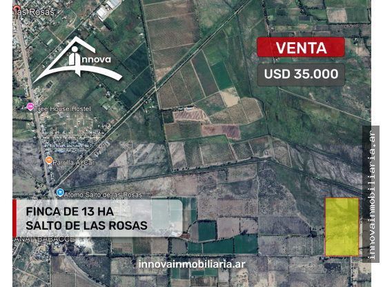 INNOVA INMOBILIARIA VENDE FINCA DE 13 HECTAREAS EN DISTRITO SALTO DE LAS ROSAS SAN RAFAEL MENDOZA. LA MISMA SE ENCUENTRA MUY CERCA DE RUTA 143. SERVICIOS: ENERGÍA ELÉCTRICA, DERECHO DE RIEGO. ESCRITURA INMEDIATA! CONTACTANOS PARA CORDINAR VISITA!!